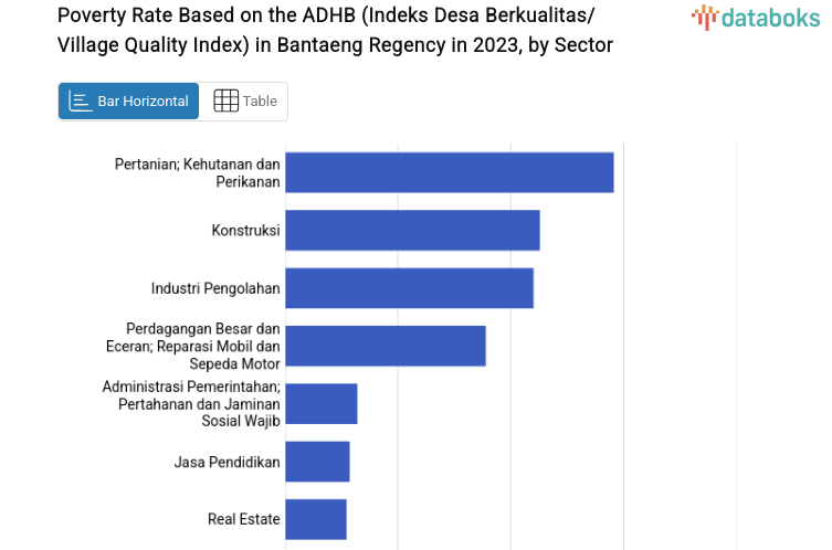 The 2023 Gross Regional Domestic Product (GRDP) at current prices in Bantaeng Regency reached Rp12.75 trillion. This represents a 5.56% growth compared to the previous year's Rp12.16 trillion.