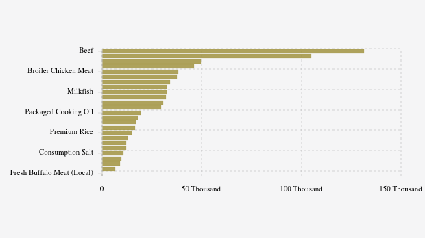 Meanwhile, prices of several commodities such as fresh buffalo meat (local), packaged cooking oil, mackerel, red onions, and garlic bulbs decreased compared to yesterday's prices.