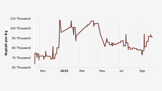 Meanwhile, the daily price of red chilies in modern markets in West Java over the past three months has increased by 24.04% from the previous price of Rp87,350 per kg.