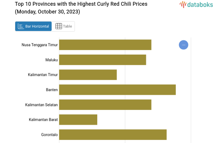 The price of curly red chilies in East Nusa Tenggara is Rp 119,900 per kg (Monday, October 30, 2023)
