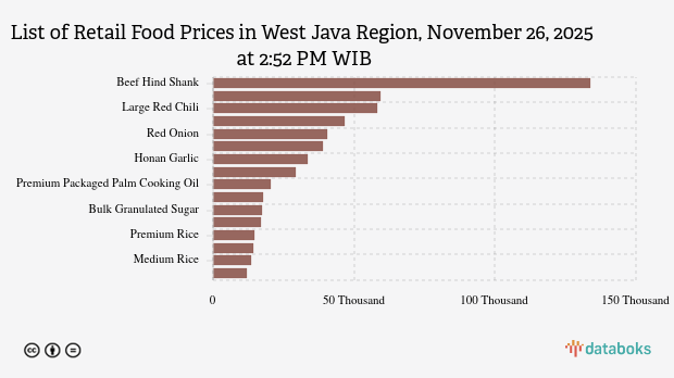 Here is the complete list of prices for 16 food commodities in West Java according to SP2KP Kemendag on November 26, 2025, at 2:52 PM WIB.