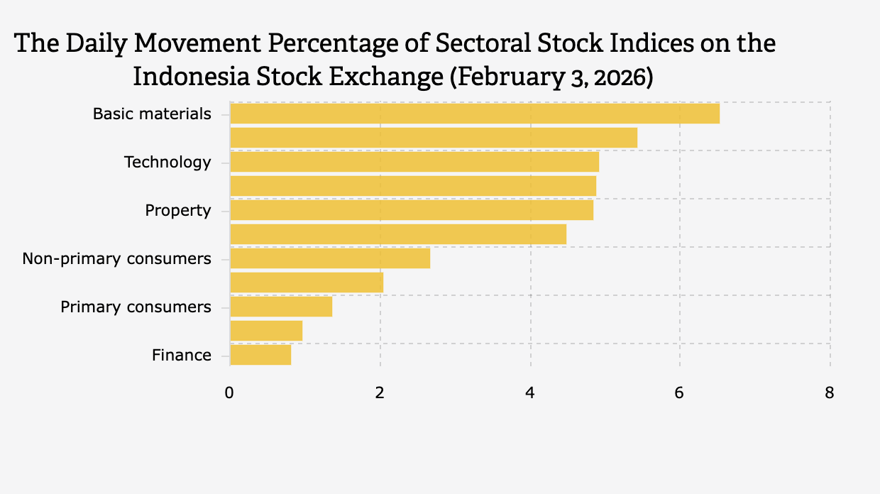 Based on data from the Ministry of Trade's Basic Needs Market Monitoring System (SP2KP Kemendag) on Tuesday (3/2/2026) at 15:36 WIB, out of 16 commodities, 1 commodity increased and 6 commodities decreased.