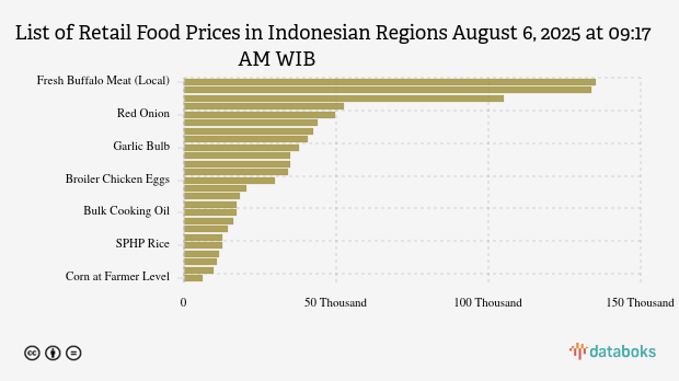 Below is the complete list of prices for 25 food ingredients in Indonesia according to Bapanas on August 6, 2025, at 09:17 AM WIB.