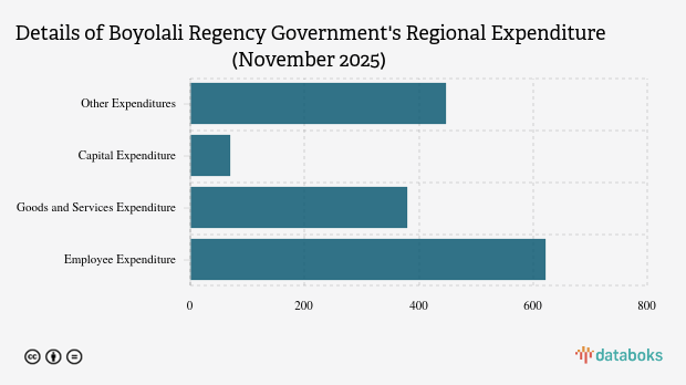 During the period of January 2025 to November 2025, the realization of the Boyolali Regency Government's Regional Expenditure was Rp1,519.40 billion, or equivalent to 60.07% of the 2025 Regional Expenditure budget.