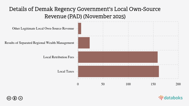 Based on data from the 2025 Regional Revenue and Expenditure Budget (APBD), the Local Own-Source Revenue (PAD) budget for the Demak Regency Government, Central Java Province, amounted to Rp607.00 billion.