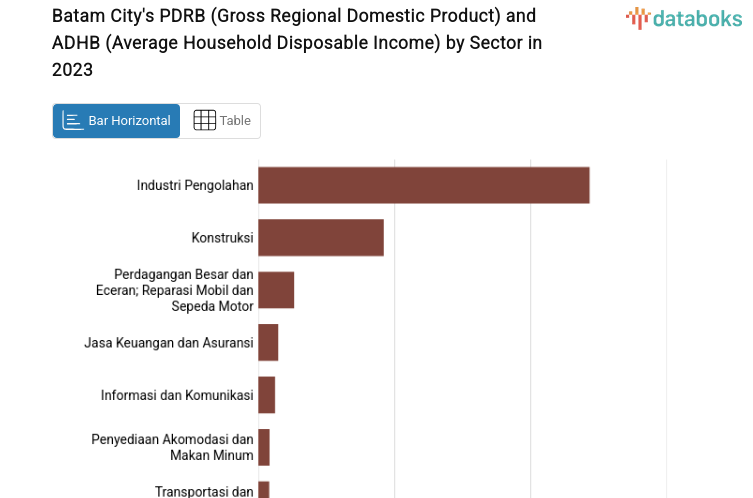 Batam's 2023 current price Gross Regional Domestic Product (GRDP) reached Rp216.1 trillion. This represents a 7.04% increase compared to the previous year's Rp194.84 trillion.