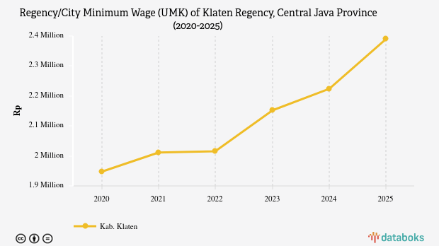 Based on data from the Central Statistics Agency (BPS) and the Central Java Provincial Government, Klaten's Regency/City Minimum Wage (UMK) is Rp2,389,873 in 2025.
