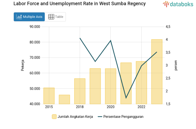 The increase in the open unemployment rate (OUR) is related to the labor force data in this region. The number of workers in West Sumba Regency has increased over the past three years. Historically, 66,729 workers were recorded in 2021, increasing to 67,587 in 2022, and reaching 81,775 in 2023.