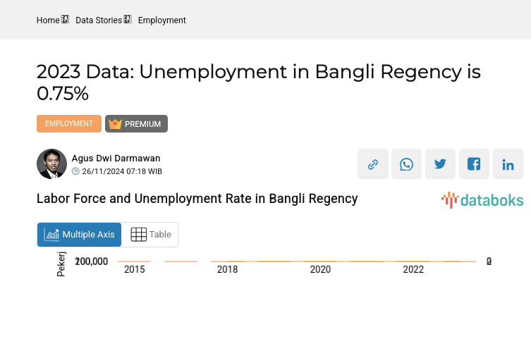The open unemployment rate (OUR) in Bangli Regency in December 2023 decreased by 0.01% to 0.75% compared to December 2022. Over the past six years, the OUR has shown a downward trend, continuing the decreasing trend of the previous year.