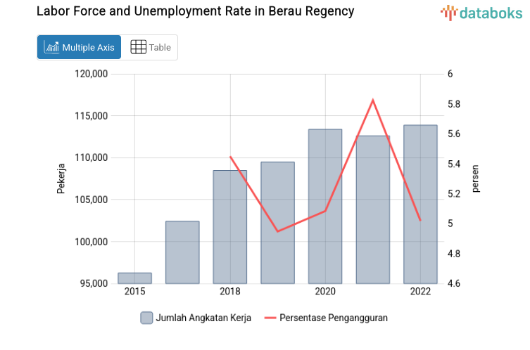 The decrease in the open unemployment rate (OUR) in Berau Regency is not directly related to the plummeting economic growth in 2022. The economy in this region in 2022 was recorded at 3.95 percent. Previously, in 2021, economic growth in this regency/city was recorded at 5.36 percent.