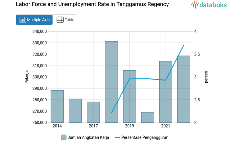 The decrease in the open unemployment rate (OUR) in Tanggamus Regency is not directly related to significant economic growth in 2022. The economy in this region in 2022 was recorded at 4.16 percent. Previously, in 2021, economic growth in this regency/city was recorded at 2.34 percent.