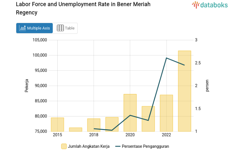 The Central Statistics Agency (BPS) reports that the open unemployment rate (OUR) in Bener Meriah Regency reached 2.45% in 2023. This figure is a decrease of 0.16% compared to December 2022, which was recorded at 2.61%. However, compared to December 2021, it increased by 1.21%.
