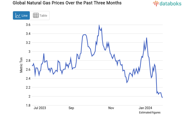 Global Natural Gas Prices Traded at US$1.98 per Mmbtu This Afternoon (Wednesday, February 7, 2024)
