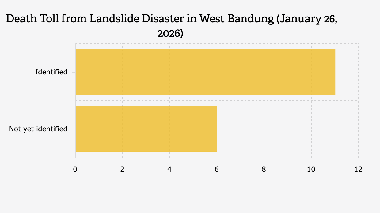 According to BNPB data, during the period of January 1-25, 2026, there have been 128 flood incidents and 15 landslide disasters in Indonesia. The following is a list of provinces affected.
