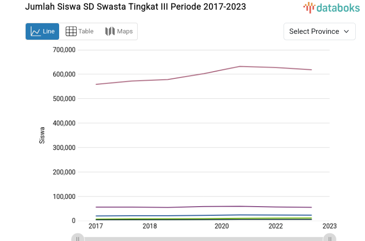 Jumlah Siswa SD Swasta Tingkat III Periode 2017-2023