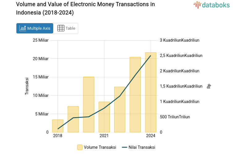 Indonesia's electronic money transaction value reached Rp2.5 quadrillion in 2024, a new all-time high.