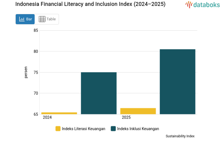 According to a survey by the Financial Services Authority (OJK) and the Central Bureau of Statistics (BPS), Indonesia's financial literacy and inclusion index increased in 2025 compared to the previou