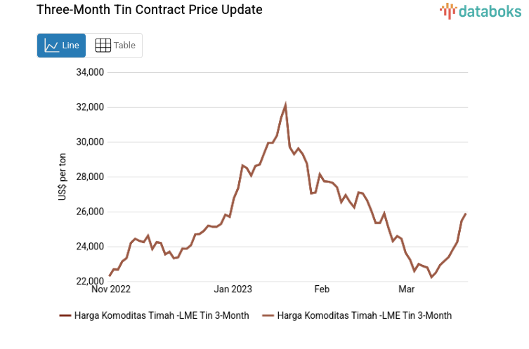 Tin Prices Rise to US$25,900 per Ton on Tuesday, March 28, 2023