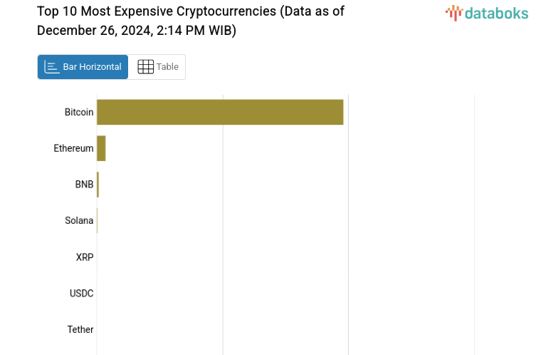 Below are the market capitalization values of the 10 most expensive cryptocurrencies as of 2:14 PM WIB on December 26, 2024: