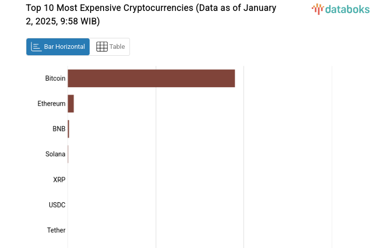 The following are the market capitalization values of the 10 most expensive cryptocurrencies as of 09:58 WIB on January 2, 2025: