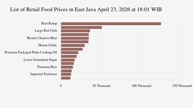 As of 4:46 PM WIB this afternoon, the Indonesian rupiah in the daily spot market was traded at Rp 17,294.5 per US Dollar on Thursday, April 23, 2026. This exchange rate weakened by 0.74% compared to the previous day's close of Rp 17,168.1 per US Dollar. The daily exchange rate movement is projected to range between Rp 17,170 and Rp 17,310 per US Dollar.