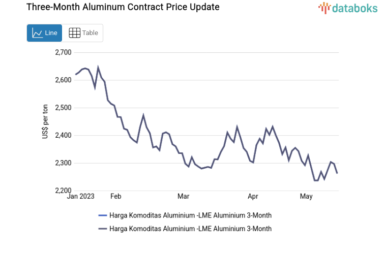 Aluminum Price Falls to US$2,262 per Ton on Monday, May 22, 2023