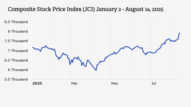 The Jakarta Composite Index (JCI) closed up 0.49% to 7,931.25 at the close of trading on Thursday (14/8/2025). This achievement sets a new record for the year and is close to the psychological level or all-time high of 8,000.