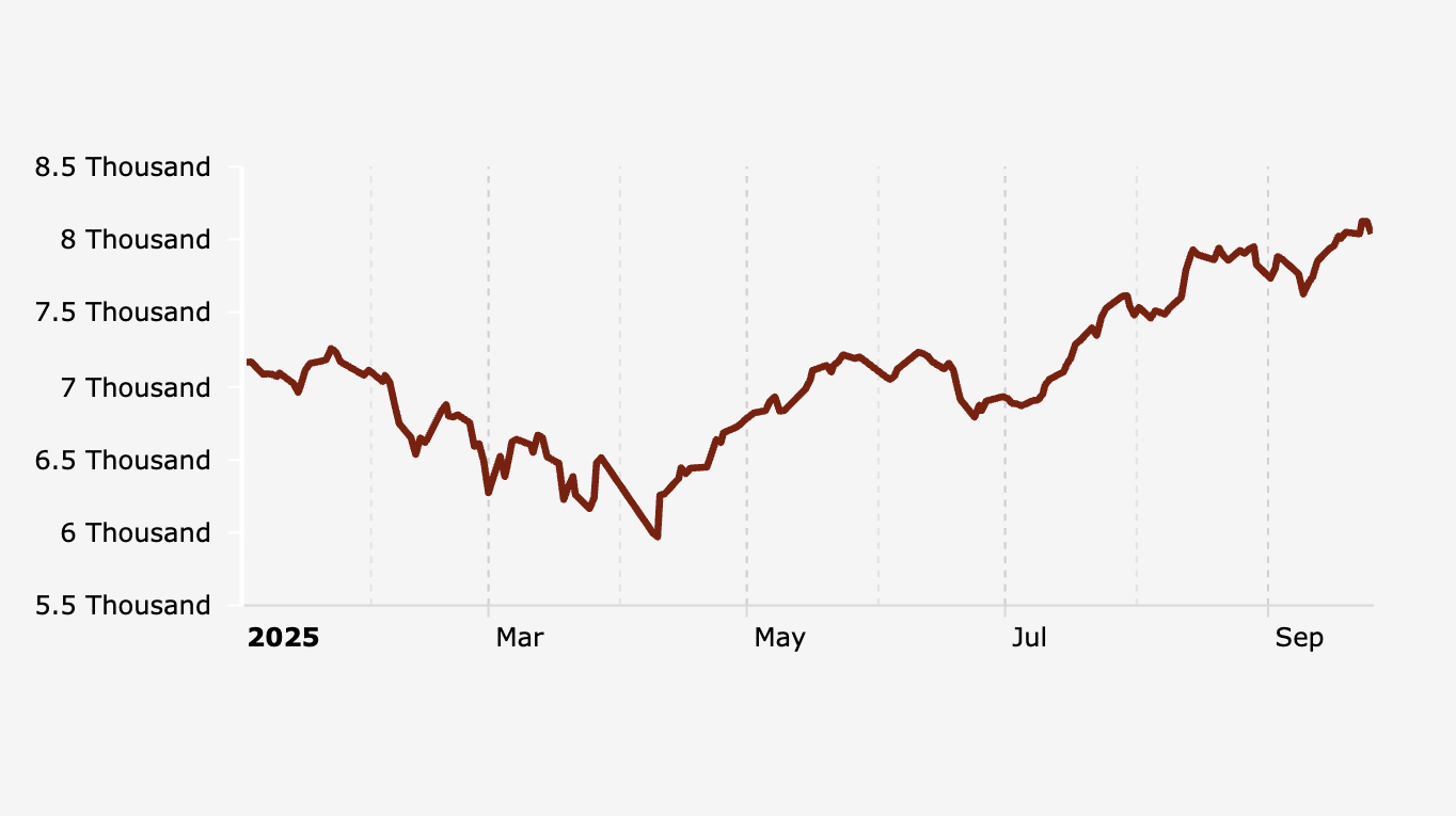 The IDX Composite Index (IHSG) weakened by 1.06% to 8,040.66 at the close of trading on Thursday (25/9/2025).