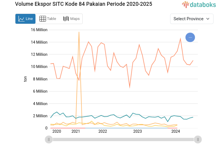 Statistik Volume Ekspor SITC Kode 84 Pakaian Periode 2020-2025