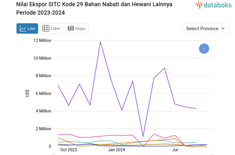Statistik Nilai Ekspor SITC Kode 29 Bahan Nabati dan Hewani Lainnya Periode 2023-2024