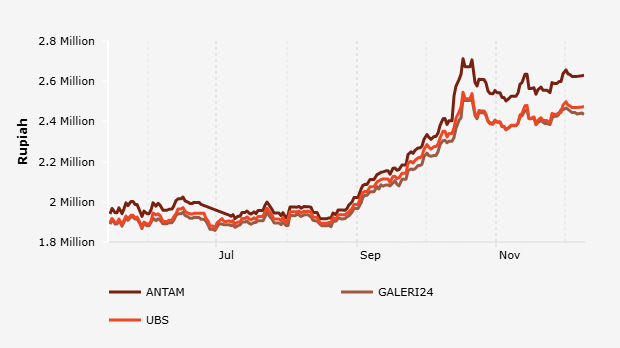 On the other hand, the buyback price per gram of Antam gold is Rp2,195,000, UBS Rp2,282,000, and Galeri24 Rp2,284,000.