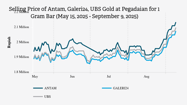 The prices of Galeri24, UBS, and Antam gold at Pegadaian increased as of Tuesday, September 9, 2025.