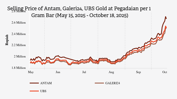 The prices of Galeri24, UBS, and Antam gold at Pegadaian decreased as of Saturday, October 18, 2025.