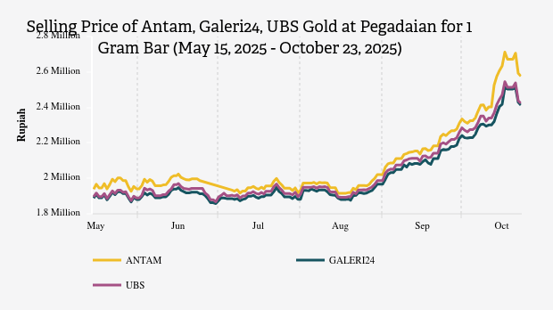 The prices of Galeri24, Antam, and UBS gold at Pegadaian dropped as of Thursday, October 23, 2025.