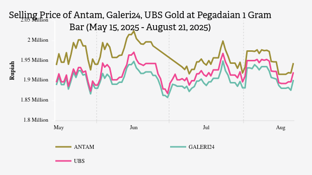 Today's Gold Price UBS at Pegadaian Rp1,921,000 per Gram (August 21, 2025)
