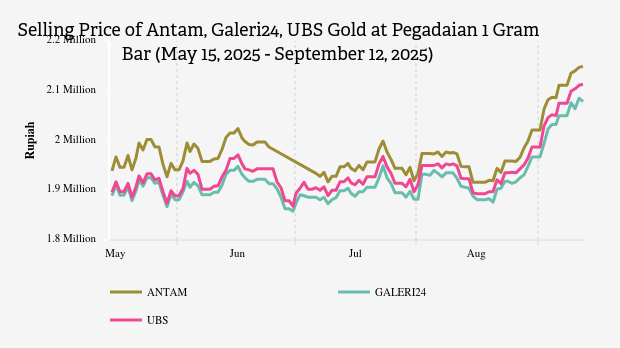 Today''s Gold Price September 12, 2025 at Pegadaian, UBS Rises Rp2,000 per Gram