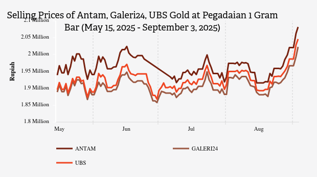 The prices of Galeri24, UBS, and Antam gold at Pegadaian increased as of Wednesday, September 3, 2025.