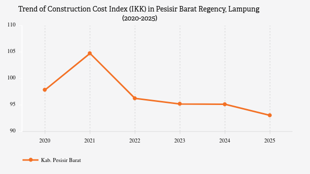According to the 2025 IKK Provincial and Regency/City publication by the Central Statistics Agency (BPS), IKK is a price index that illustrates the level of construction costliness in a regency/city compared to prices in the reference city, Surabaya.