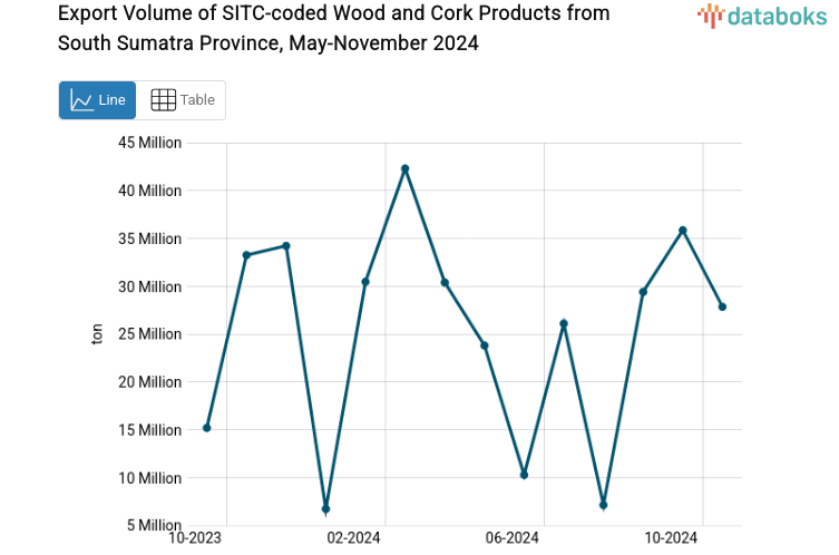 Export Volume of SITC-Coded Wood and Cork Products from South Sumatra Province, May-November 2024