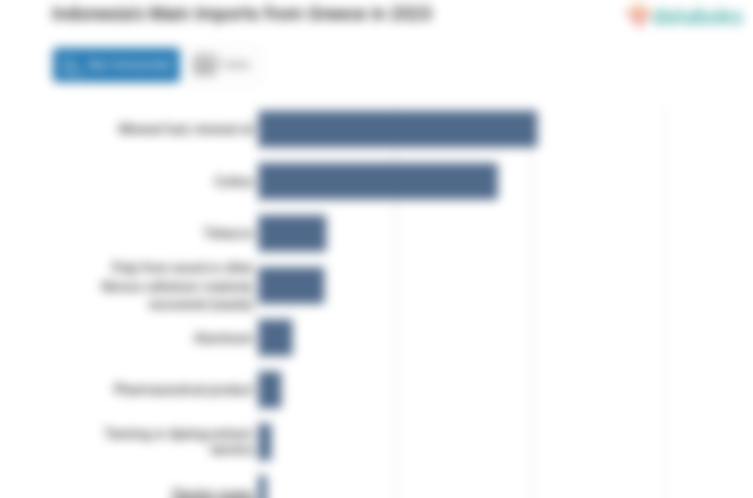 The following is a list of the top five products imported by Indonesia from Greece. This list is ordered from highest to lowest transaction value.