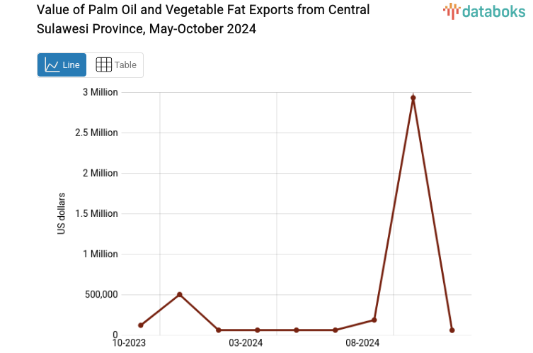 October 2024 Export Value of Vegetable Oils and Fats from Central Sulawesi Province