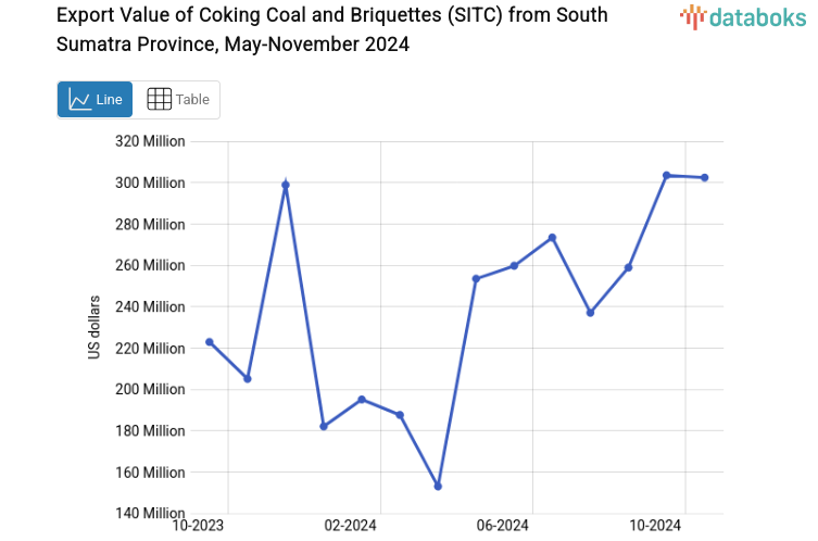 Sumatera Selatan Province's Coking Coal and Briquette Export Value, November 2024