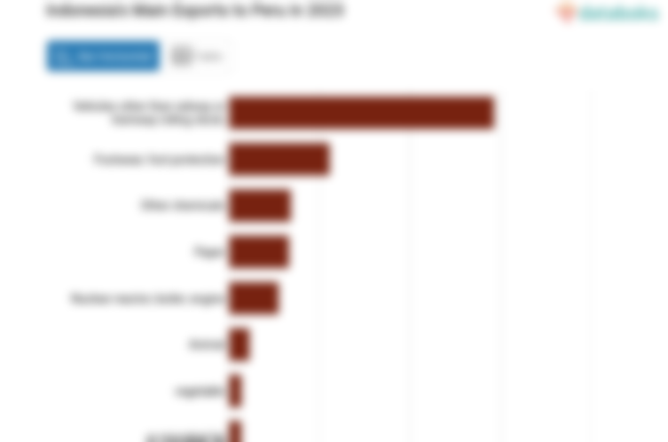 Indonesia recorded US$367.4 million in exports to Peru as of December 2023. This figure represents a 17.03% decrease compared to the previous year's exports of US$442.78 million.