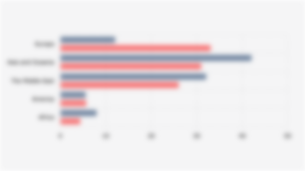 During the period 2021-2025, Europe received 33% of the total global arms import volume, the largest compared to other regions.