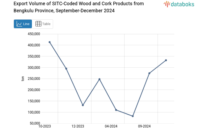 December 2024 Export Volume of Wood and Cork Products from Bengkulu Province