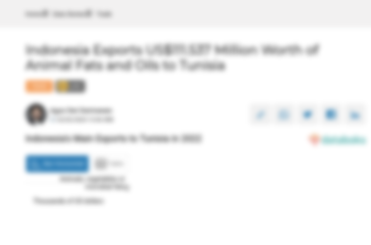 Falling under HS code 15, Animal, vegetable, or microbial fats and oils and their cleavage products are grouped with Prepared edible fats and oils. Exports of this product to Tunisia ranked first. Indonesia exported US$111,537 thousand from this category. Exports of Animal, vegetable, or microbial fats and oils and their cleavage products; Prepared edible fats and oils increased compared to the previous period, which was recorded at US$79,404 thousand.