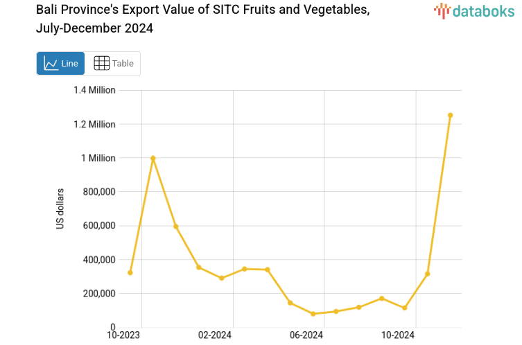 Bali Province's Export Value of Fruits and Vegetables, December 2024