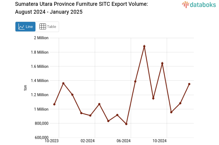 Sumatera Utara Province Furniture Export Volume, January 2025
