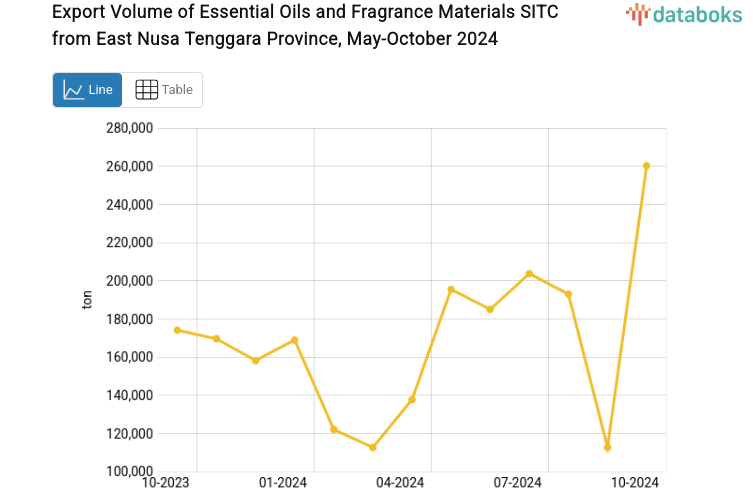 October 2024 Export Volume of Essential Oils and Fragrance Materials from East Nusa Tenggara Province