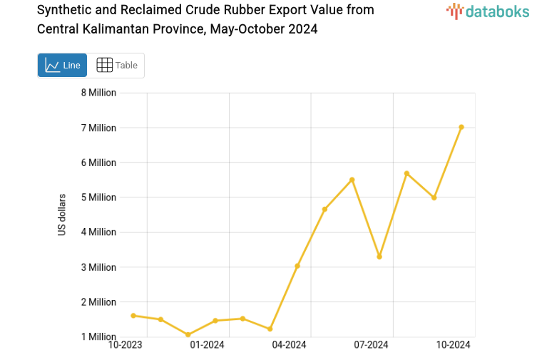 Synthetic and Reclaimed Raw Rubber Export Value of Central Kalimantan Province, October 2024